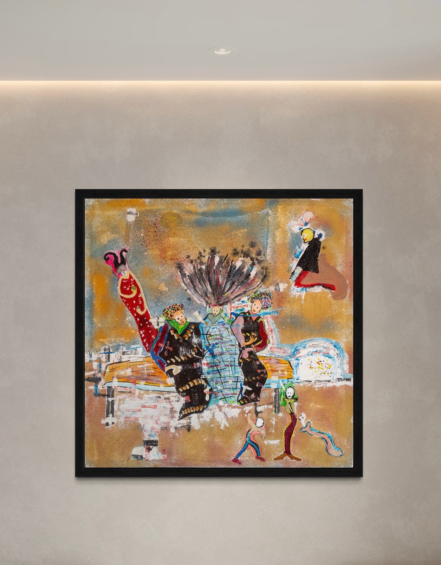 Acrylic, Siphoned Sand, Spray Paint, Water Colour, Oil Pastel on Canvas